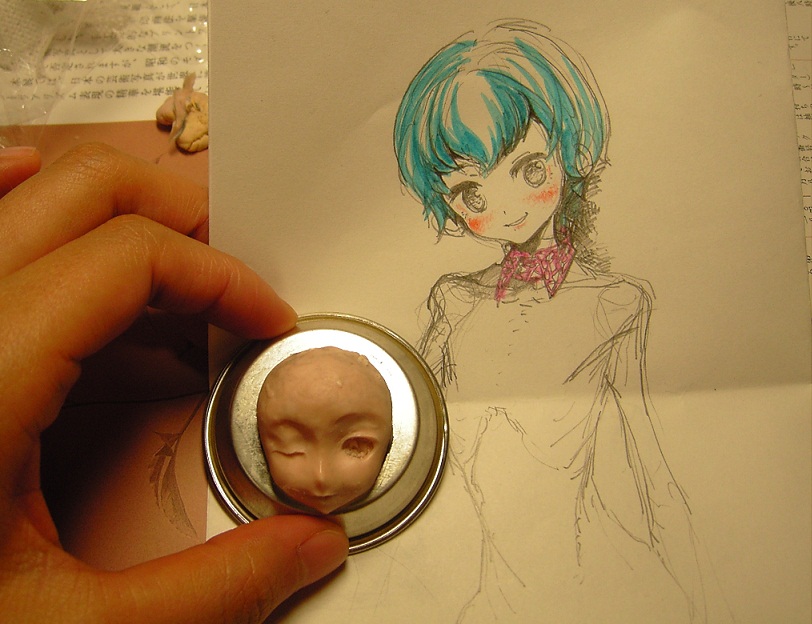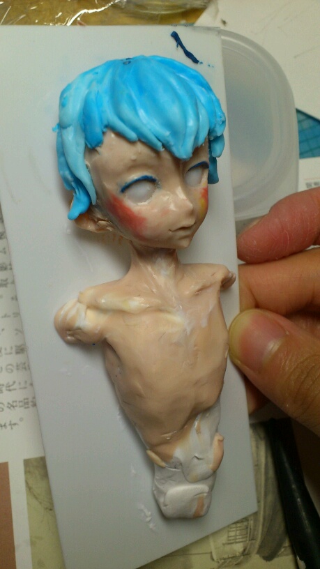 この調子でボディーも進めます。肌色のフィモスカで造ってますが、設定上肌の色は陶器のような白です。